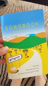 Pieter and Andrea as well as new couple, Jan Wilhelm and Trianka, are celebrating Shabbat with Kelly and me in a B&B in Tiberius. Pieter brought out a box of new songbooks that will be dedicated this week. Cover pictured at left.